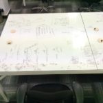 Note: I feel it is important to point out that every glass wall/table-top is functional to be written upon, which is a great advantage. I just love seeing people writing their ideas and plans on a glass wall.