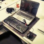 The typical spacious workstation (mock setup of laptop and accessories for scale)