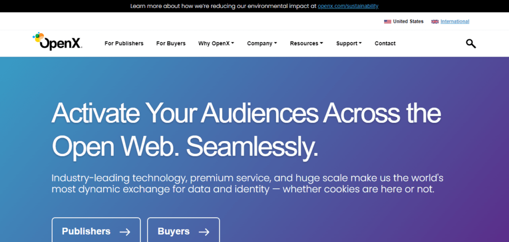 OpenX is quite a reliable name when it comes to programmatic advertising. Some of the services for publishers that they offer include: