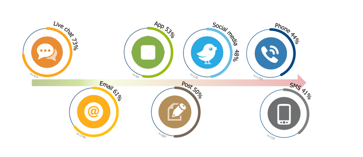 One of the best ways to solve users’ pain points is to provide customer support. Live chat is the most effective customer service channel with the highest satisfaction level of 73%.