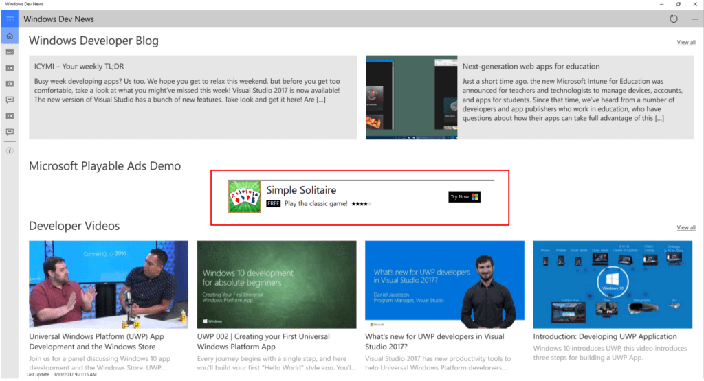 To optimize UX and increase ad revenue, make an animation that entertains visitors during scrolling or page loads, just like Windows Dev News did it in the example below: