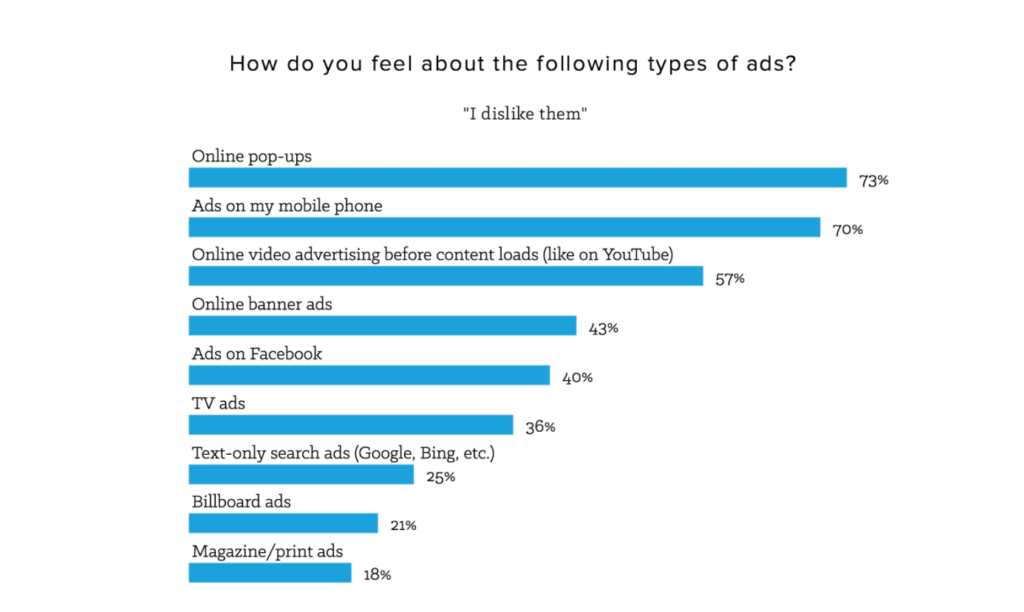 To maximize ads, some publishers do research and dig into consumer preferences. After reading the HubSpot research on different ad types, it’s easy to understand that pop-up or banner ads don’t work well for modern customers.