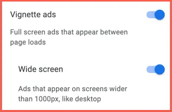 - Scroll down and move to the “Ad Formats” Section, where you will be able to enable the option for “Vignette Ads”.