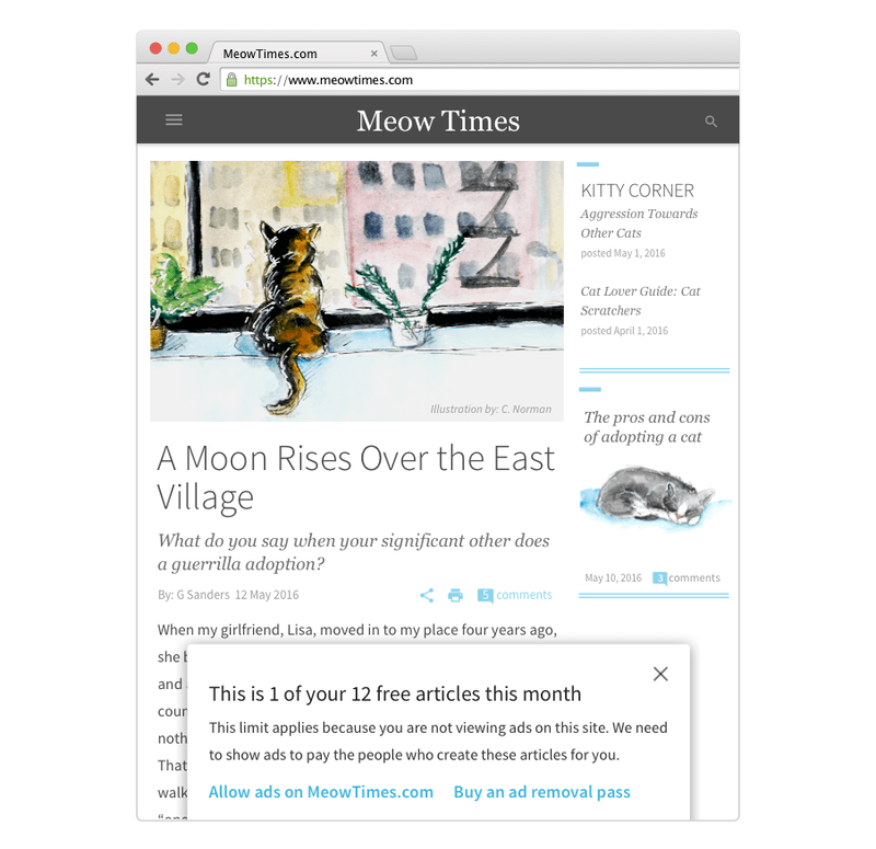 For the longest time, there was simply no recourse for publishers against losing revenue to ad blockers. Then as the problem grew, a lot of hacks and tweaks emerged including requesting them to whitelist your website, getting your ads certified through the safe ads programs that most ad blockers now run, and as a last-ditch resort—outright blocking website access for ad block users.