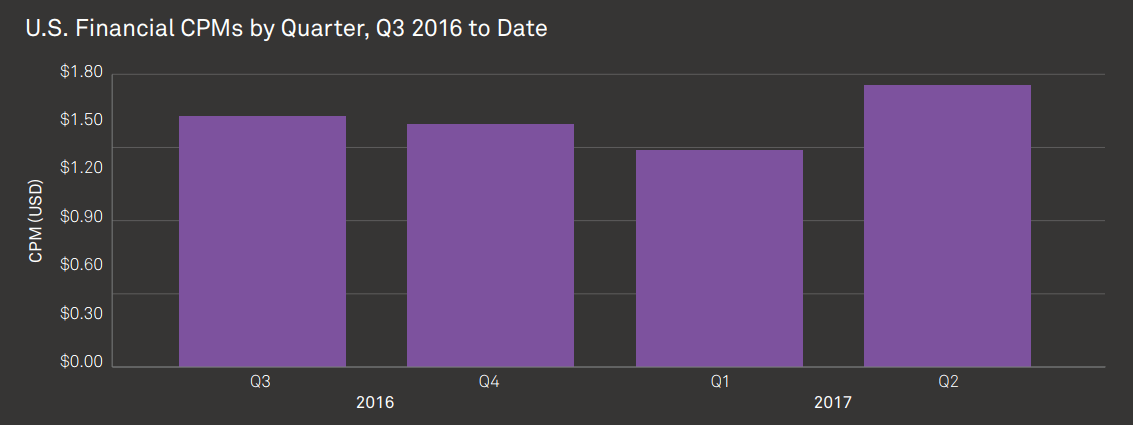 CPMs for most advertising categories experience similar drops (>40%). The exceptions are niches like Finance, which sees 12-20% drop in CPMs compared to the previous quarter. The category is also one of the few that are barely affected by the holiday season frenzy.