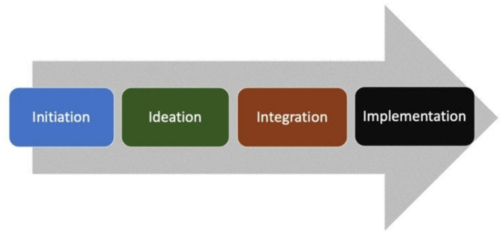 - Implementation (build a business pilot, A/B testing, and, if required, return to the design board).