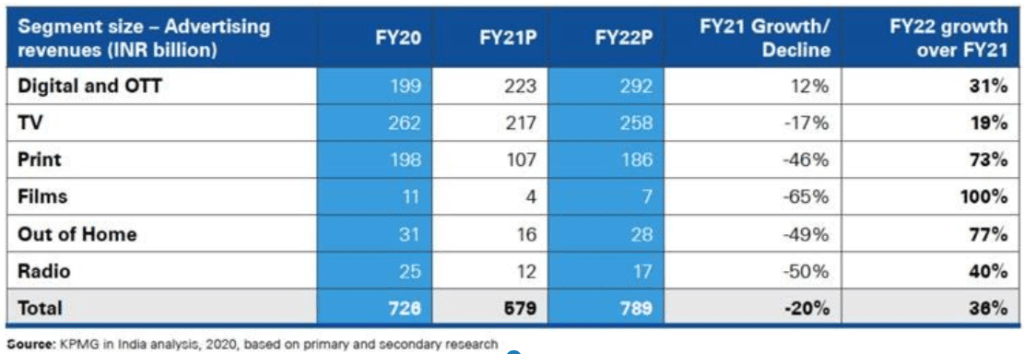 According to the KPMG September 2020 media report, during 2020, new digital and over-the-top (OTT) media will surpass the well-established print media and, in 2021, the television media.